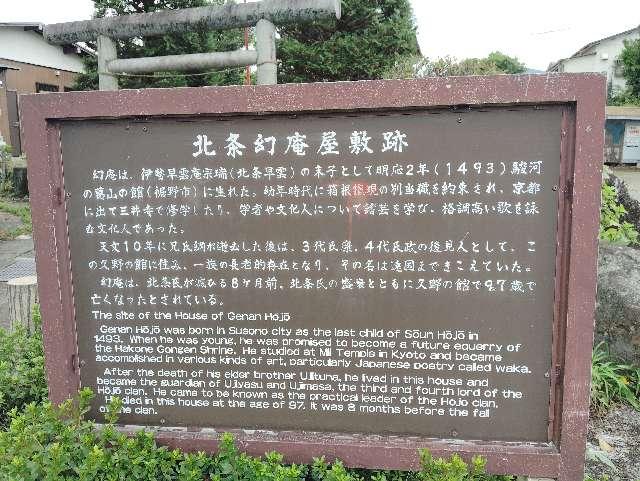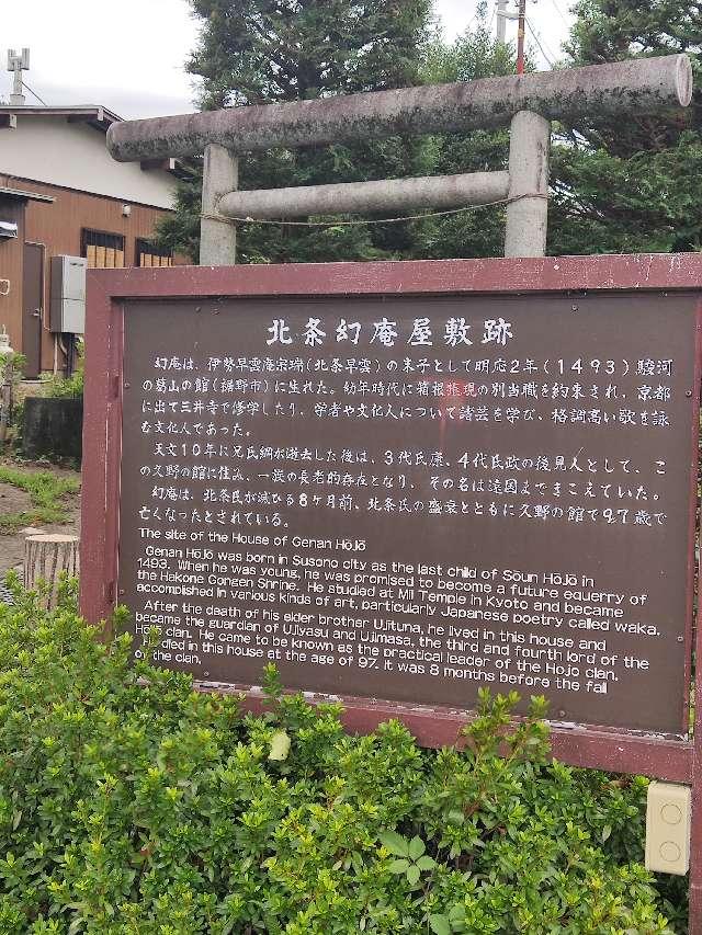 | お城情報 | 北条氏を五代に亘って支えた北条幻庵の屋敷跡は、久野保育園付近にあり幻庵の霊廟と案内板が設置されている。