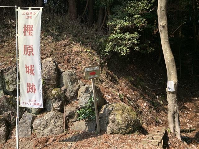 (くーさん) おすすめ度: ★★★★ 津島神社本殿の右側に案内板があり、その左側に登城口があります。20歩程で、もう堀切跡?1分で虎口に到着〜。はや!土塁、横堀などあり、1分しか登ってないのに驚きの崖っぷり。 津島神社の前に樫原公民館があり、その前に車を停めさせていただきましたー。 |