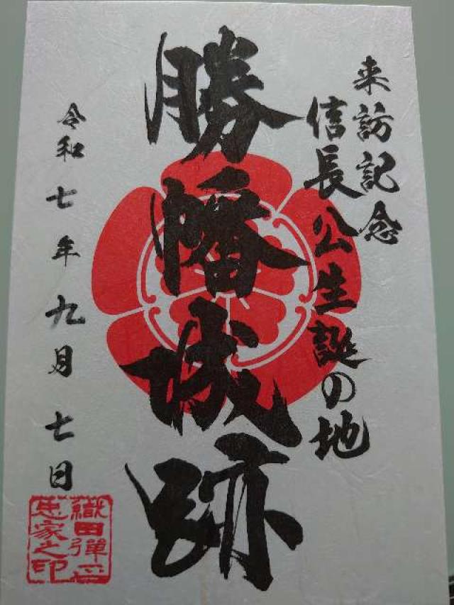 食券自販機のボタンに「勝幡城 御城印 300円」のボタンがあり、食券?をカウンターに持って行くと交換してもらえます。