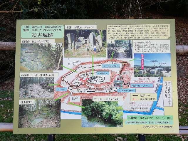 | お城情報 | 現在も中世末期の城郭遺構が良好に保存されています。写真は、主郭にある 通称「弾除け岩」です。 須古城の東側に案内板が設置されている。丘陵には小学校の南側の道路の奥から遊歩道が付いており、山上に簡単に登ることができる。 最寄り駅(直線距離) 3.1km 肥前白石駅 3.6km 大町駅 4.0km 肥前竜王駅 4.5km 北方駅 6.5km 高橋駅 |